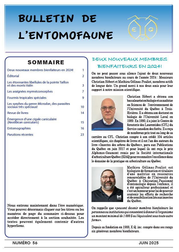 Accueil | | Insectes du Québec | | Publications | | Feuillets | | Volumes | | Bulletin | | Cahiers | | Photolithographies | | Revue de livres | | Premières mentions | | Provancher | | Commander | | Liens utiles |